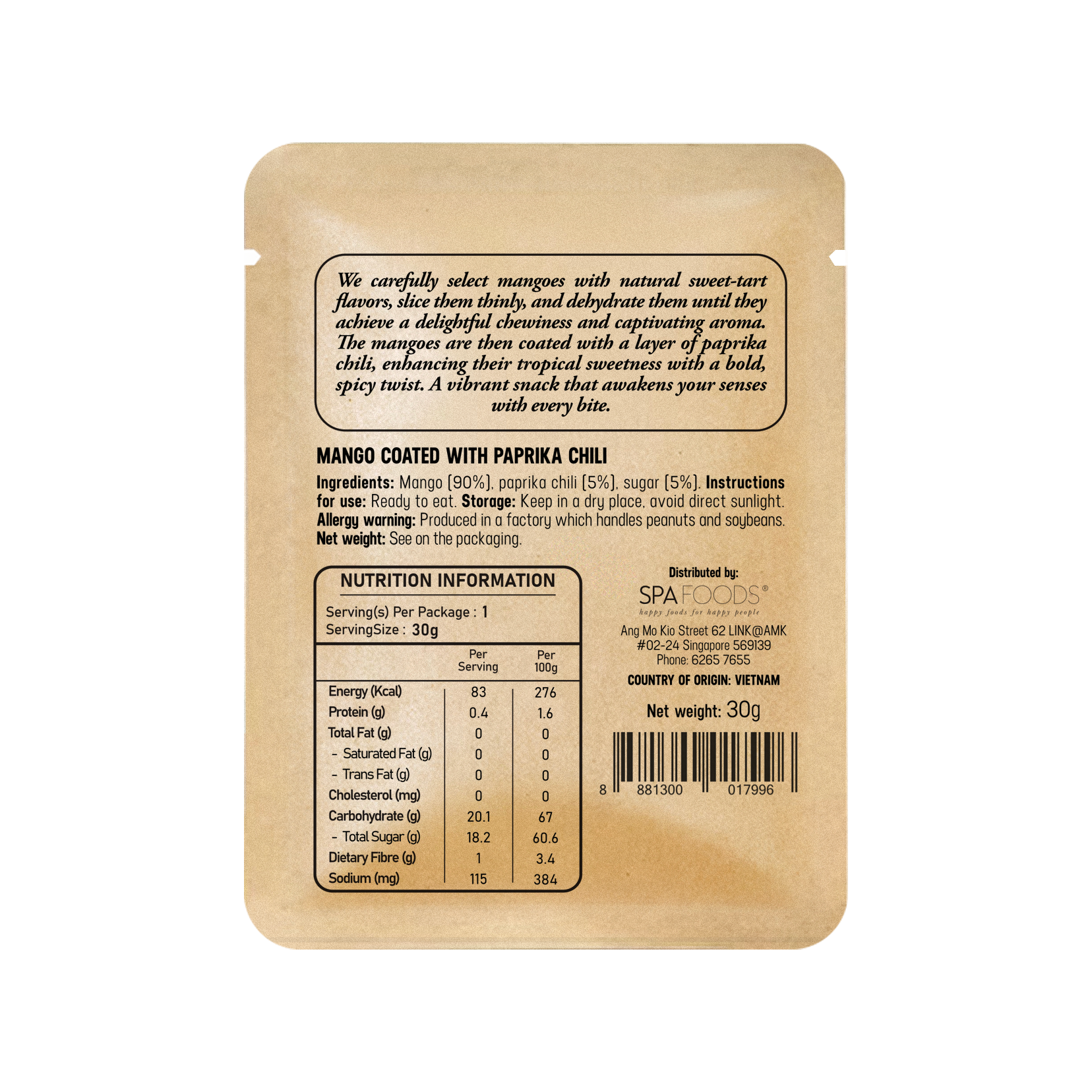 Ingredients: Mango (90%), paprika chili (5%), sugar (5%).