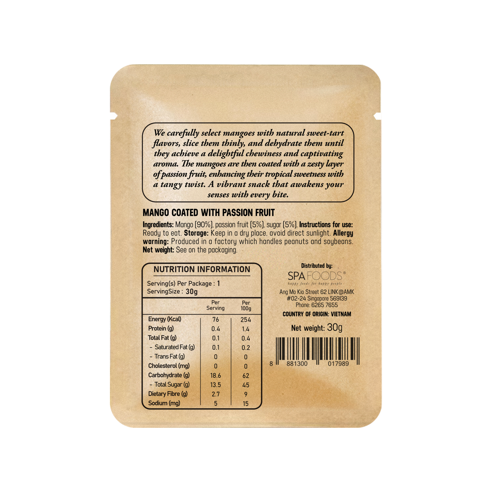 We carefully select mangoes with natural sweet-tart flavors, slice them thinly, and dehydrate them until they achieve a delightful chewiness and captivating aroma. The mangoes are then coated with a zesty layer of passion fruit, enhancing their tropical sweetness with a tangy twist. A vibrant snack that awakens your senses with every bite.