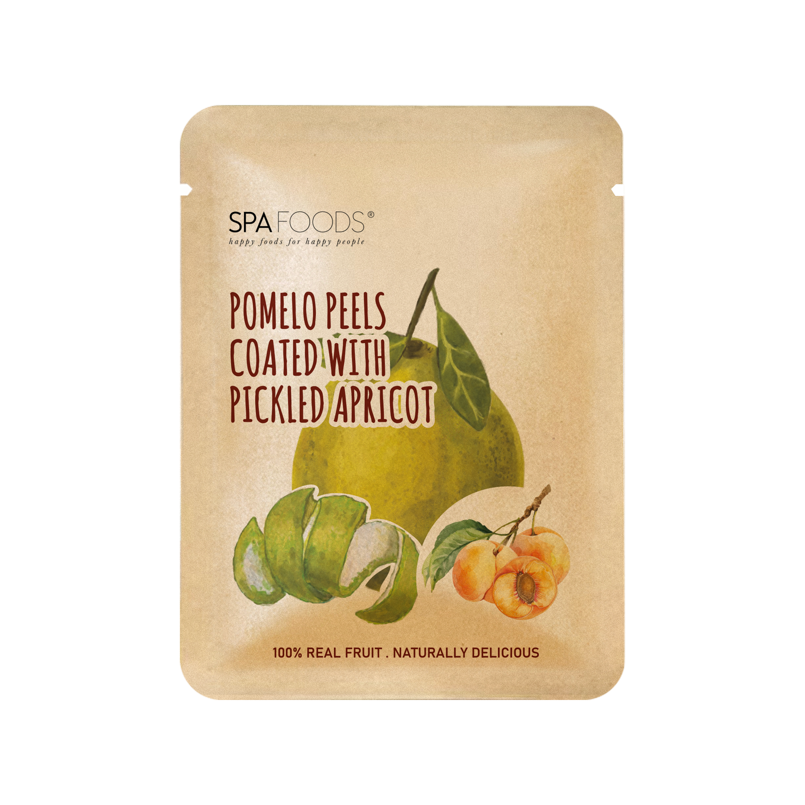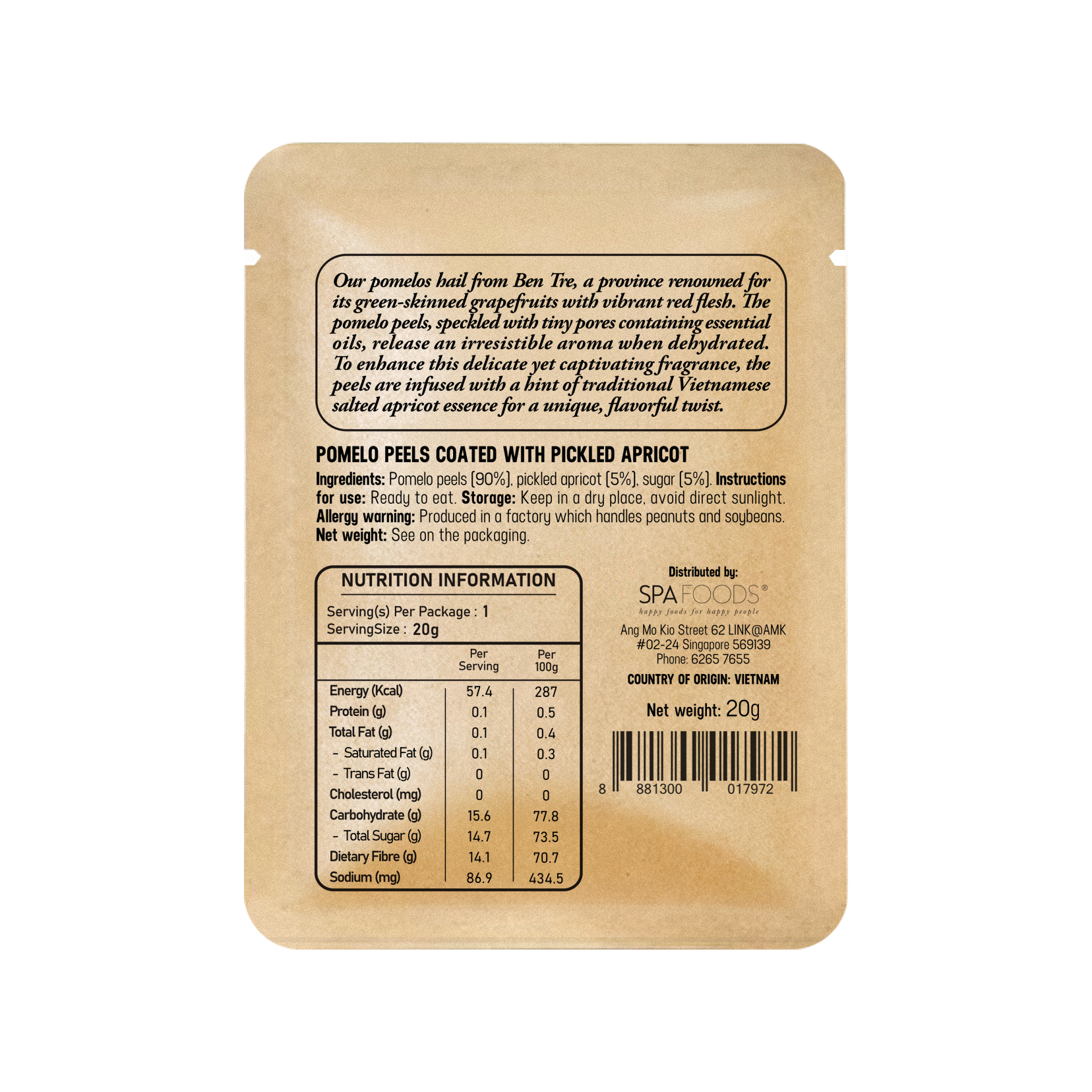Ingredients: Pomelo peels (90%), pickled apricot (5%), sugar (5%).